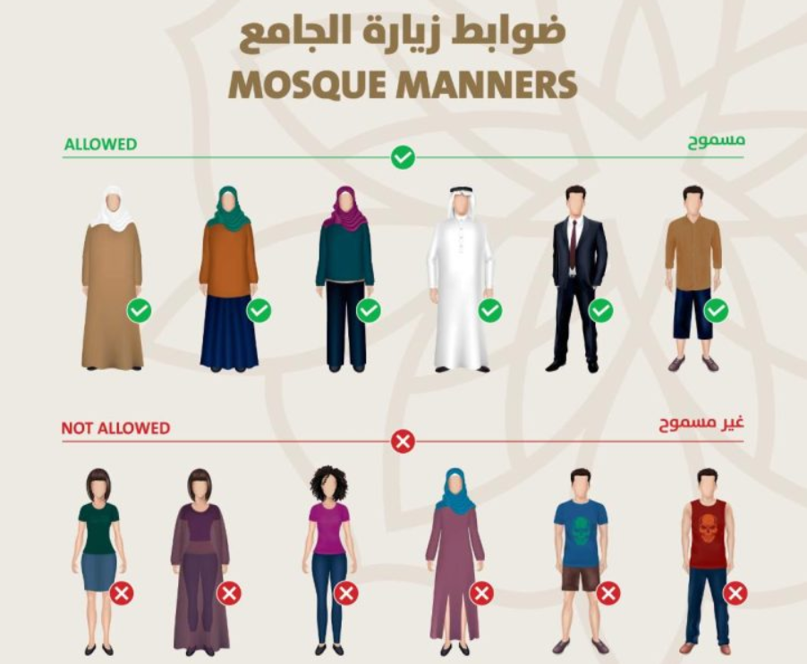 A vakítóan fehér épület visszatükrözte a napsugarakat, napszemüveg viselése elengedhetetlen. A Mecset ingyenesen látogatható.