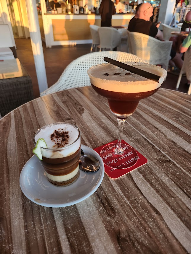 Este lesétáltunk a partra és megkóstoltam a tenerifei kávé specialitást a barraquitot, ami sűrített tejet és narancslikőrt tartalmaz a kávé mellett. Fanni martinis kávét ivott. Igaz, kicsit későre járt a kávé iváshoz, de úgy voltam vele, hogy vagy most vagy soha, mert napközben vezetni fogok, máskor is csak este lesz alkalmam megkóstolni az alkoholos kávét.