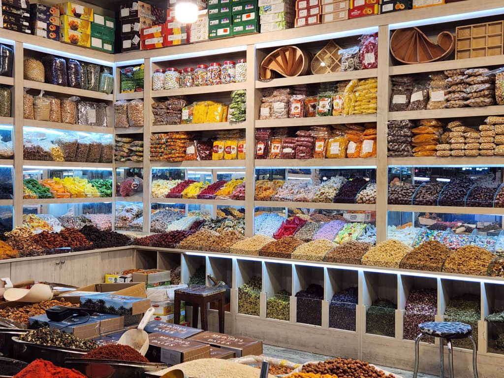 Amit viszont lefotóztam, az az alábbi stand, mert annyira színes, rendezett és hívogató, hogy meg kellett örökíteni. Érdekes, hogy nem szeretem a pomelot, sem a kandírozott gyümölcsöket, de alkalmam nyílt megkóstolni a kandírozott pomelot és az bejött. Ezek szerint előfordul, hogy a nem + nem néha igen 😀