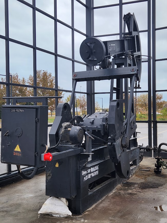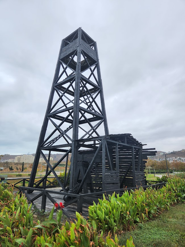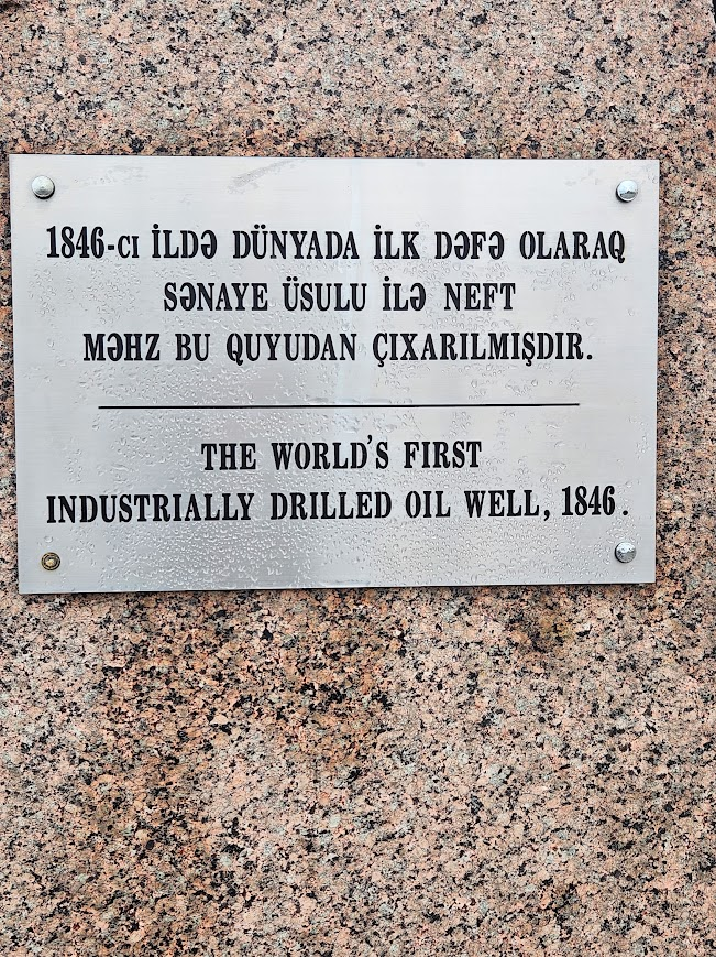 Az utolsó napot szintén két csoportra osztva töltöttük el, mert Edináék bementek a Heydar Aliyev Centerbe, mi pedig szerettük volna megnézni a régi kőolajkutakat. Miután összepakoltunk és kijelentkeztünk a szállodából, ezzel indítottuk a napot, mert Baku dél részén találhatóak a szállásunk közelében. A Baku Aquatic Palace előtti parknál parkoltunk le, ahol megnézhettük a világ első ipari kőolajkútját kiállítva 1846-ból.