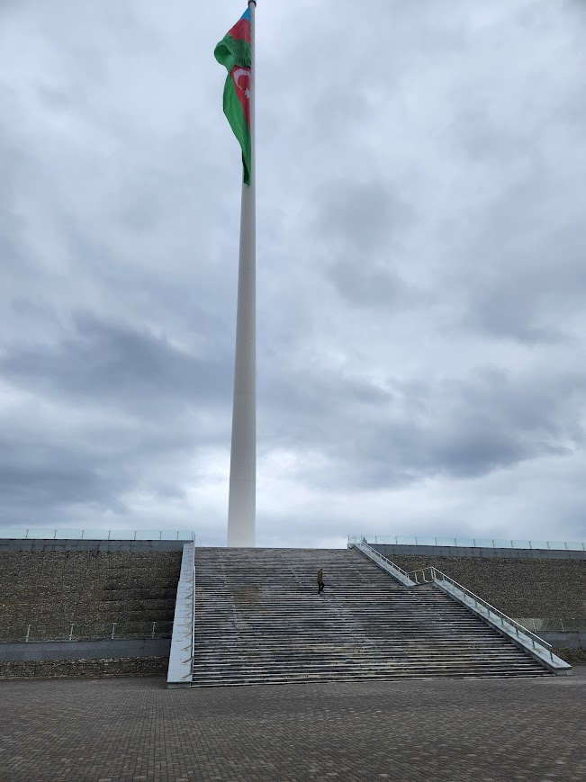 Lacinak nagyon tetszett a part mentén található hatalmas nemzeti zászló és mivel útba esett, megálltunk, hogy közelebbről megnézhesse. A Zászló tér maga egy hatalmas, nyitott sétány a Kaszpi-tenger mellett. Kiderült, hogy nem csak érzésre hatalmas a zászló, valóban bekerült a Guiness rekordok könyvébe méreteivel: