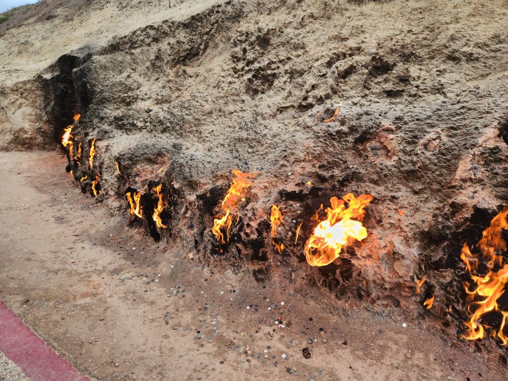 Yanardag, vagyis az Égő hegy természetes gáztűz, amely egy domboldalon folyamatosan ég a felszínre szivárgó metángáz miatt. Nem alszik ki esőben sem, és évszázadok óta égő lángjai miatt a hely a „tűz földje” jelképe. El tudnék képzelni a teraszon egy állandóan égő tűztálat, amit sosem kell begyújtani 😄
