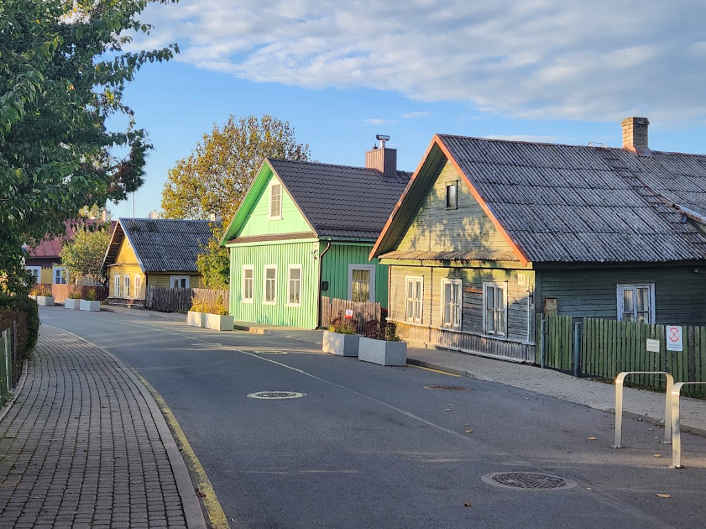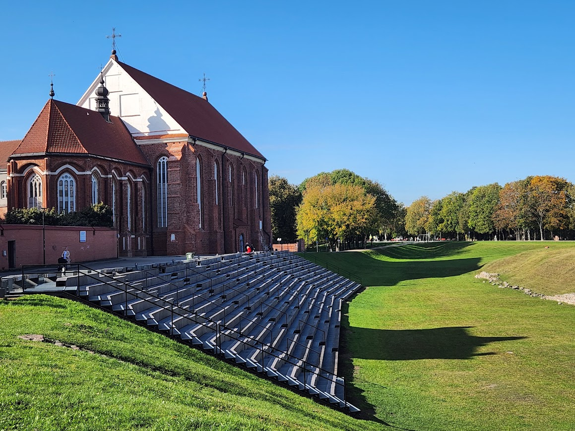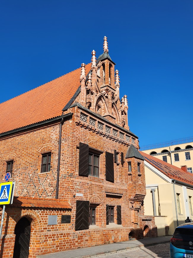Az Óvárosban kezdtünk és rögtön az egyik kis utácban belebotlottunk az egyik legrégebbi épületbe, mely a 15. században épült. Innen tovább sétáltunk a főtérre, ahol éppen térkövezést folyt, így a munkások kalapálásán kívül kihalt volt az egész tér. Biztosan szép és hangulatos lesz, amikor elkészül. A közelben található a Kaunasi vár, melynek vörös téglás kerek tornyát ismerősként üdvözöltük. A körülötte elterülő zöld szőnyeg titkára is rájöttünk, azaz a mindenhol frissen nyírt fűére: robot fűnyíró! Három robot is munkálkodott a tökéletes végeredmény érdekében.