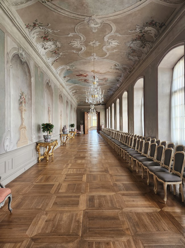 A kastély eredeti bútorai és festményei nagyrészt elvesztek az évszázadok során. A Lett restaurátorok célja az volt, hogy a 18. századi barokk-rokokó pompát „újraalkossák”, de mivel kevés eredeti bútor maradt fenn, sokat más gyűjteményekből hoztak be vagy rekonstruáltak a stílusnak megfelelően. Voltak ízlésesen felújított, berendezett szobák, de némelyik számomra kifejezetten giccses, ízléstelen volt és nem a kor stílusából adódóan. Csak a szebbeket örökítettem meg 😃