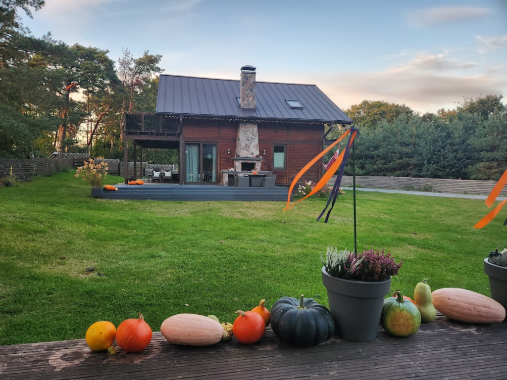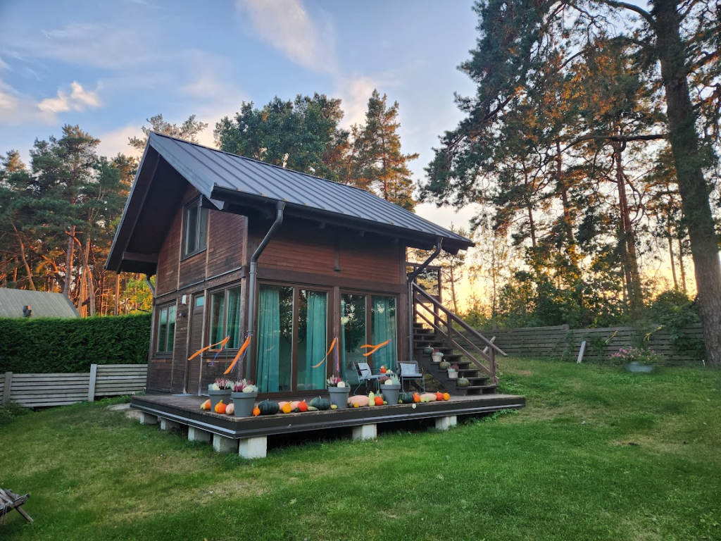 Este 7-re, ahogy terveztük, begurultunk Home Exchange-n „foglalt” tengerparti szállásunkra. Érdekesség, hogy amikor kértem a házigazdától a pontos címet, nem egy utca nevet házszámmal kaptam, hanem a városrész nevét és a ház nevét. Igen, nevét és nem számát. Azt mondta, hogy vannak házak, amelyeknek nevük van. Aranyos, nem? 😃 A telken két faház található, egy nagyobb lakóház és egy kisebb vendégház. Lévén kettőnknek bőven elég a vendégház, azt választottuk szállásunknak. Nagyon cuki volt és az a rengeteg dísztök dekoráció! Gondoltam is, hogy biztos virágos vagy dekorációs üzlete van a tulajdonosnak, aztán kiderült, hogy a ház mögötti részen teremnek a dísztökök! TÖK jó ötlet! 😆 Minden szín, méret és forma képviseltette magát, mintha épp készülődnének egy mini őszi fesztiválra. Este, amikor lement a nap, és a fák között narancsos fény szűrődött át, az egész hely pont olyan hangulatot árasztott, mint egy TÖKéletes, képeslapra kívánkozó „Ősz Lettországban” pillanat.