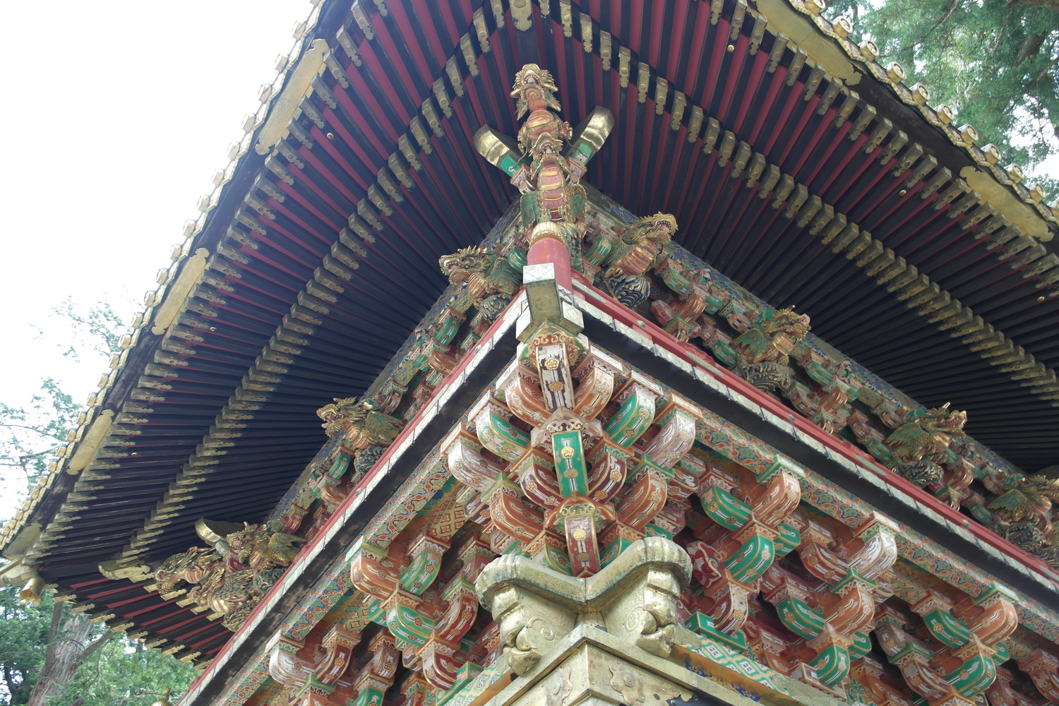 A vasútállomástól indult a busz, amivel pár perc alatt a buddhista templomok és shinto szentélyek helyzinére értünk. A többi is szép volt, amiket eddig láttunk, de ezek még durvábbak, úgy értem diszesebbek, sőt már túlzottan is. Az épületek mellett óriás fenyők magasodtak. A Toshogu szentély előtt egy öt emeletes, 132 méteres pagoda áll, melyet úgy épitettek, hogy a földrengésnek és az erős szélnek is ellenálljon.