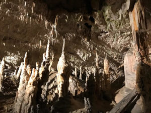 10 óra körül hagytuk el a szállást és Koperen keresztül elindultunk az első célállomás, Postojna cseppkőbarlang felé. Az út kb. 1 óra 45 perc, de autópályamatrica és kávé vásárlással együtt 13 órakor érkeztünk Postojnába. Nagy parkólóból és a sok üzletből könnyű megállapítani, hogy igencsak népszerű látnivaló a barlang. A barlang után Predjama a következő célpont és mivel volt lehetőség kombinált jegy vásárlásra, éltünk is vele (felnőtt jegy 35 Eur/fő, gyerek 20 Eur/fő. Külön barlang 26 Eur, vár 14 Eur lett volna, gyerekeknek pedig 20 és 11 Eur) A következő csoport 14 órakor indult a barlangtúrára, volt még egy kis időnk az indulásig, amit nézelődéssel töltöttünk ki. Készültünk kabátokkal, de a helyszínen is lehet kölcsönözni 3,5 euróért. Kettő óra előtt kicsivel beszállhattunk a kisvonatba és pontban kettőkor el is indultunk. 7 percig robogtunk a 24 km-es barlang belseje felé, egyre csodálatosabb termeket, cseppköveket látva. Nem jártunk még ilyen óriási barlangban, tátva maradt a szánk a hatalmas terek látván. Leginkább azt élveztem, amikor a kisvonat a cseppkövek között robogott. Mintha egy mesebeli filmdíszletbe csöppentünk volna. Egyszercsak megálltunk, kiszálltunk és kiépített gyalogúton folytattuk az utat. Elképesztő form)ákat hoz létre a természet. A legömbölyített jégcsap formától kezdve a hegyes, lapos függő cseppkőig (sztalaktit), mindenféle. Ha már szó esett a függő cseppkő nevéről, a teljesség kedvéért hadd jegyezzem le, hogy a cseppkőoszlop (amikor a függő és álló cseppkő összeér) neve sztalagnát, az álló cseppkő pedig a sztalagmit.