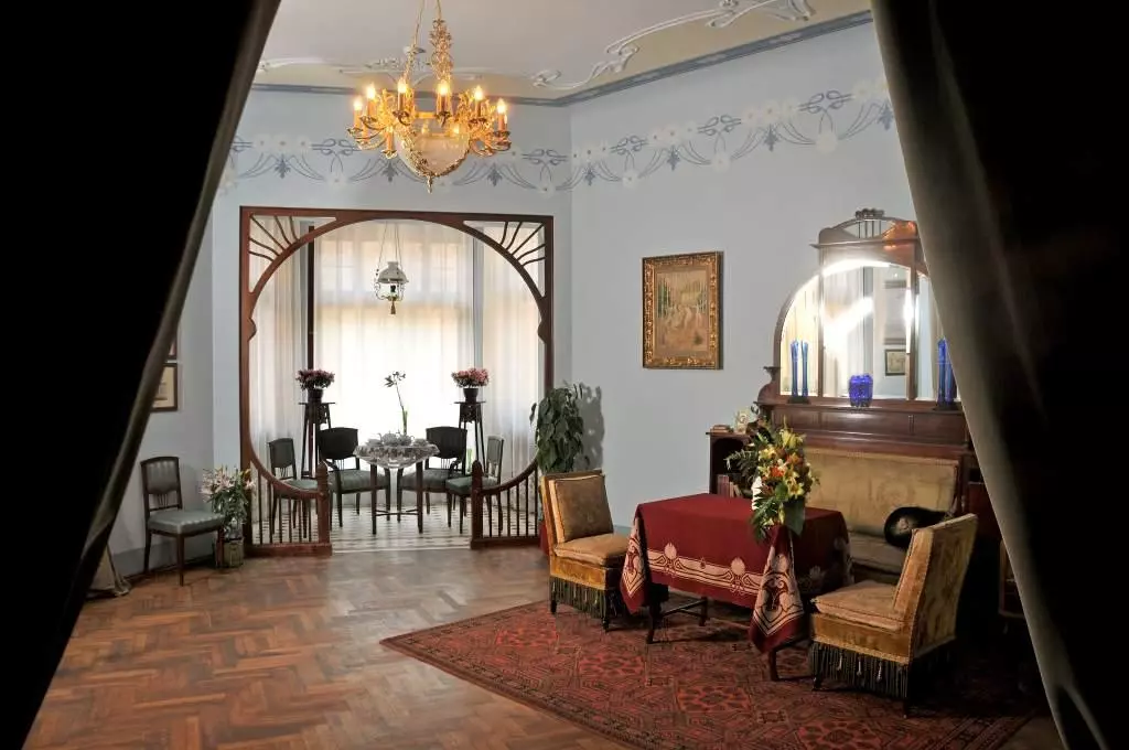 Az egyik szecessziós épület ad otthont az Art Nouveau Múzeumnak, amelyet mi is meglátogattunk. (5 EUR/fő a belépőjegy)